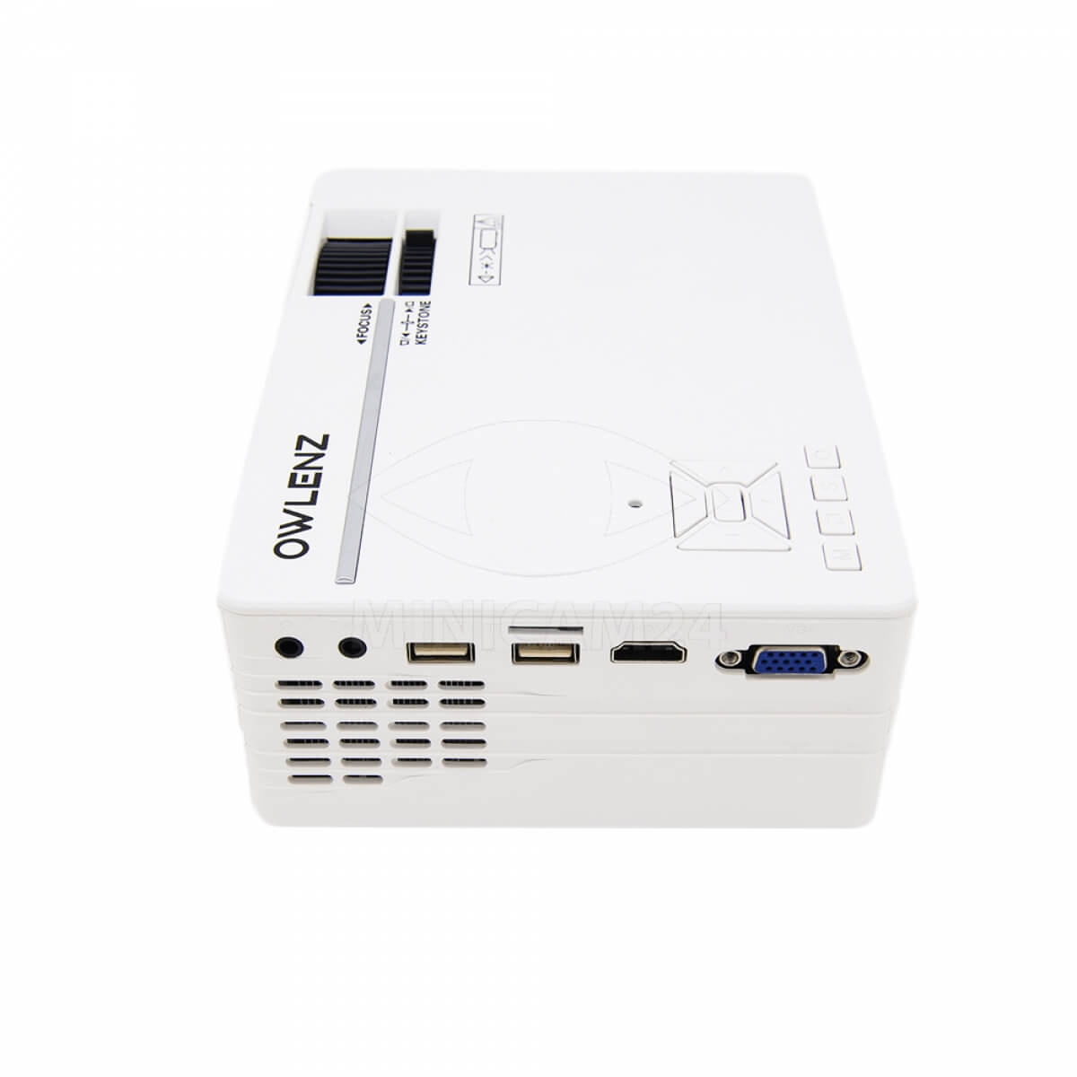 Портативный девайс, который проецирует изображение с мобильного гаджета на стену. Приспособление обладает матрицей с разрешением 1280 х720 с поддержкой 1080P. Функциональная зона для просмотра - 1.2-3.5 метра обеспечивает качественную картинку в небольших помещениях под любым углом обзора. При помощи Wi-Fi-модуля аппарат может подключаться к телефону. Предусмотрена ручная настройка объектива. Проектор оборудован LED-лампой с яркостью освещения до 2000 люмен, что позволяет просматривать контент в незатемненной комнате.
